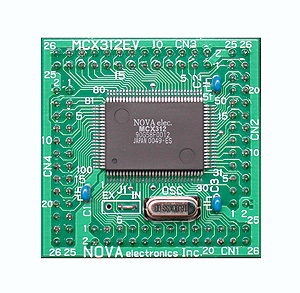 MCX312EV-MCX312評価用モジュール MCX312を基板に実装した評価用モジュールです。16MHzの水晶発振器を実装しています。IC の入出力信号は、CLK信号を除き、裏面に実装された 4個の2.54ピッチ26ピンコネクタの端子に、それぞれ配線されています。