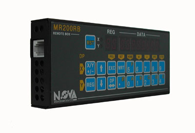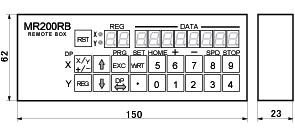 MR200RB-MR200シリーズ専用リモートボックス 付属 RS232Cケーブルで本体と接続し、動作モード・パラメータ、プログラムの書き込みを行なうことが出来ます。また、各軸のジョグ送り、原点出し、プログラム実行などの操作を行ないます。